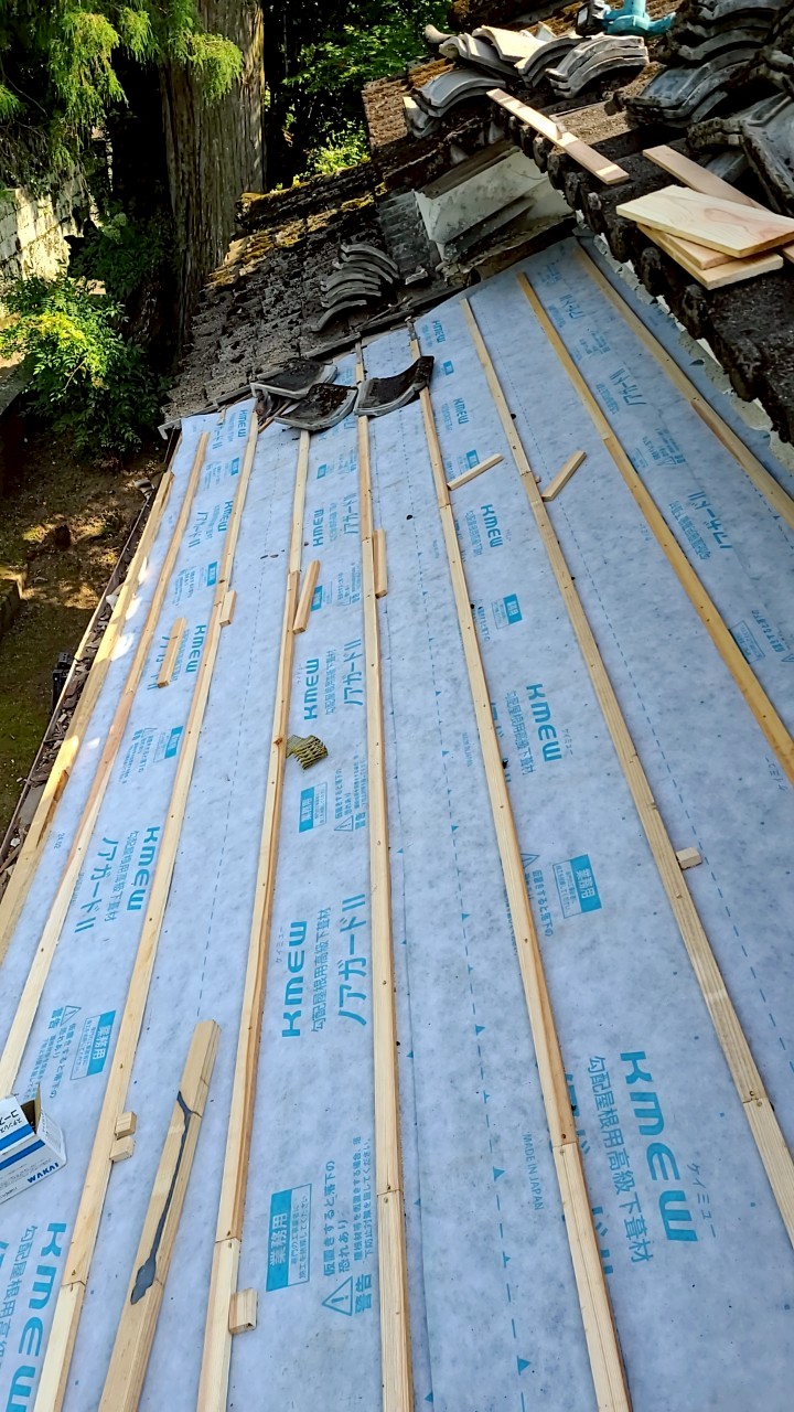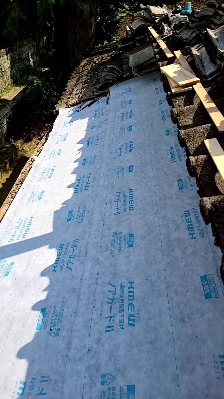 雨漏り部分の瓦をはぎ防水シートの張替えをして新しく瓦をかぶせました。屋根の上の工事はお客様の目には見えないため施工写真を撮り確認をしていただいています。