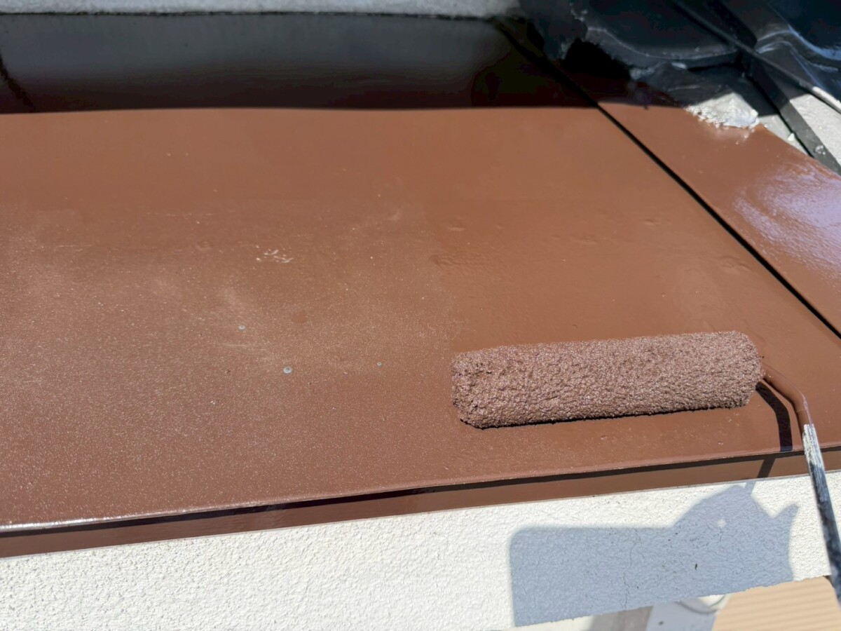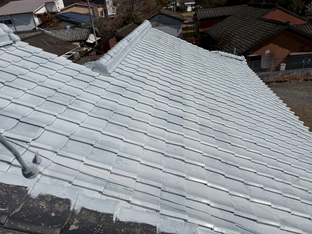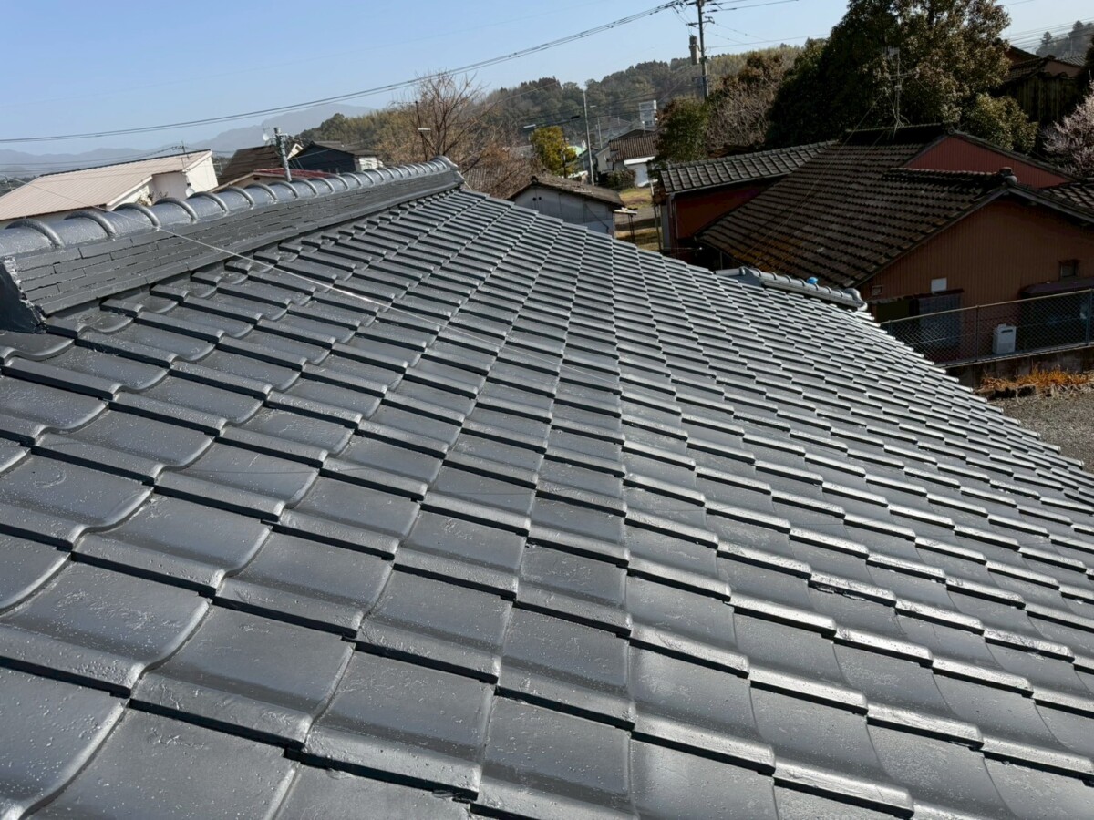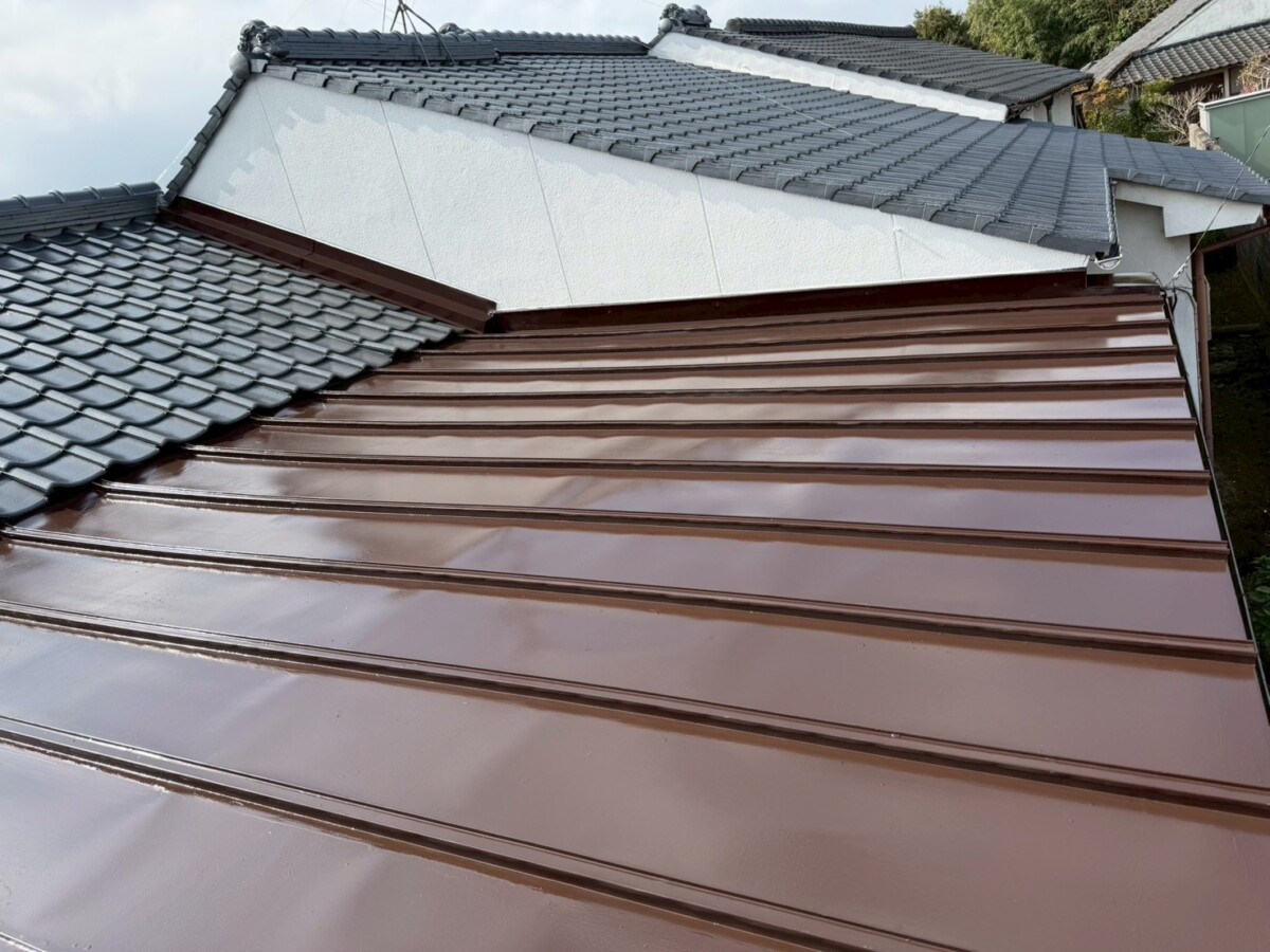 屋根の補修工事でご連絡いただいたお客様へメンテナンスのための屋根塗装工事もご提案させていただきました。10年~15年で塗装をしていくと屋根状態もきれいに保てます。